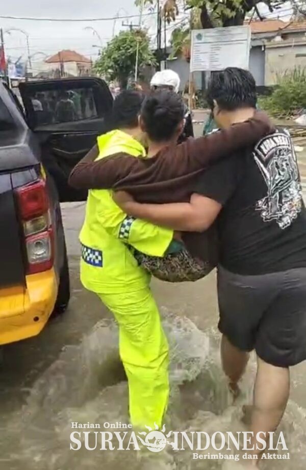 Pengalihan Arus Dilakukan Polsek Dentim, Kapolsek Pantau Langsung Situasi Banjir