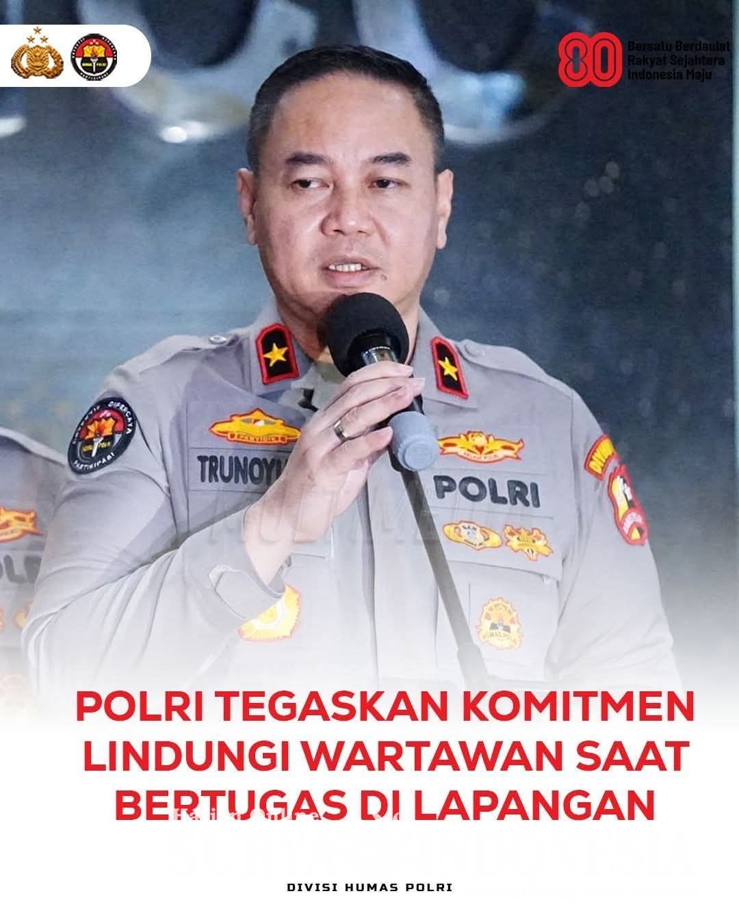 Jakarta , Surya indonesia.net – Kepolisian Negara Republik Indonesia (Polri) menegaskan komitmennya untuk menjaga kebebasan dan memberikan perlindungan kepada wartawan dalam menjalankan tugas jurnalistik.