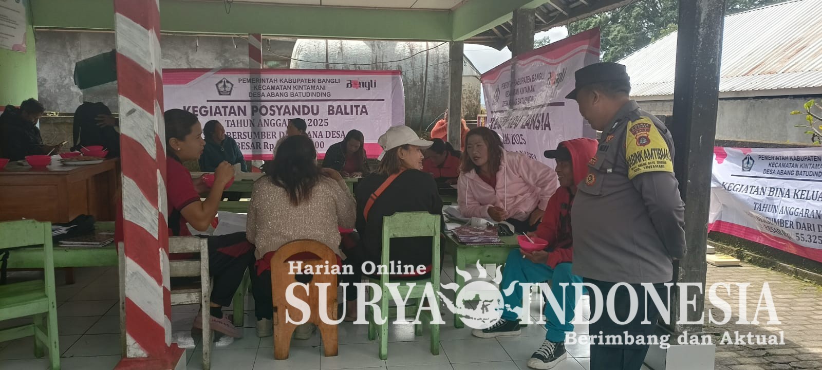 Bangli, Surya Indonesia.net – Bhabinkamtibmas Desa Abang Batudinding Polsek Kintamani, Aiptu I Wayan Purnamerta, melaksanakan pendampingan kegiatan posyandu balita yang digelar di Banjar Klakat, Desa Abang Batudinding, Kecamatan Kintamani, Kabupaten Bangli. Kegiatan ini didanai dari program dana desa.