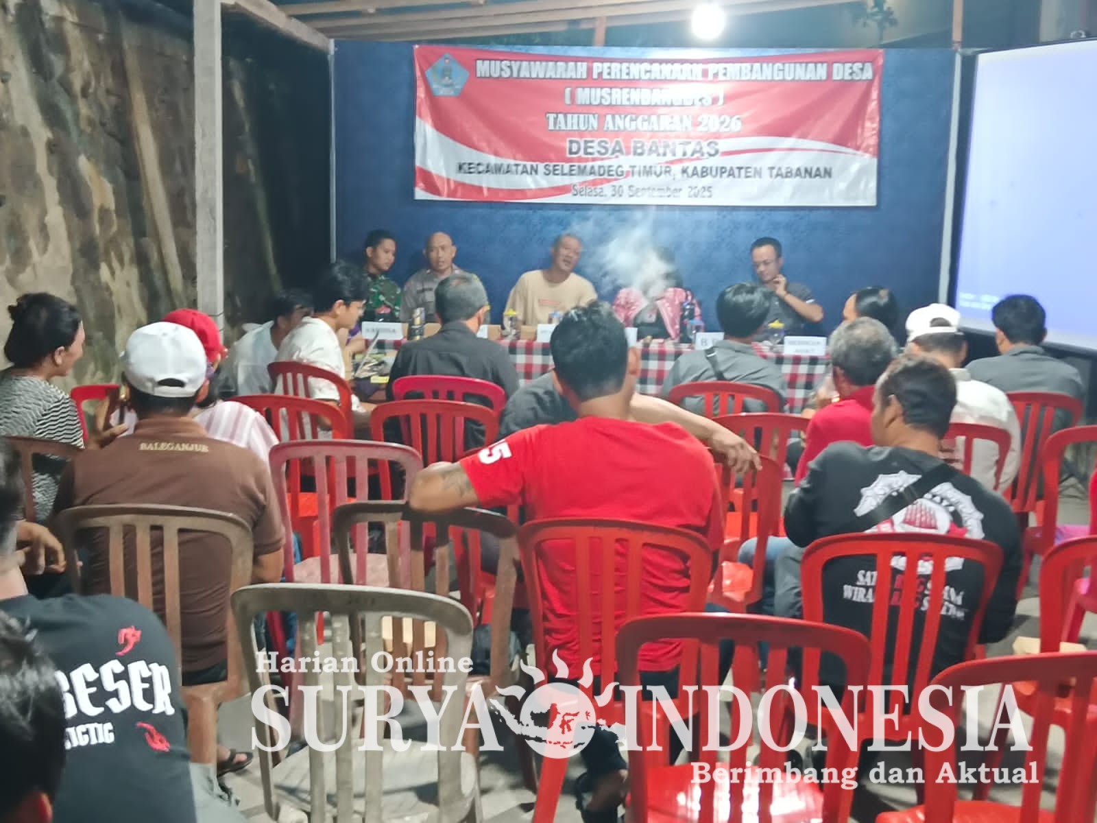 Polres Tabanan, Surya indonesi.net – Polsek Selemadeg Timur, Musyawarah Desa (Musdes) Penyusunan Rencana Kerja Pemerintah Desa (RKP Desa) Bantas Tahun Anggaran 2026 berlangsung di Aula Kantor Desa Bantas, Kecamatan Selemadeg Timur, Kabupaten Tabanan, pada Selasa, 30 September 2025.