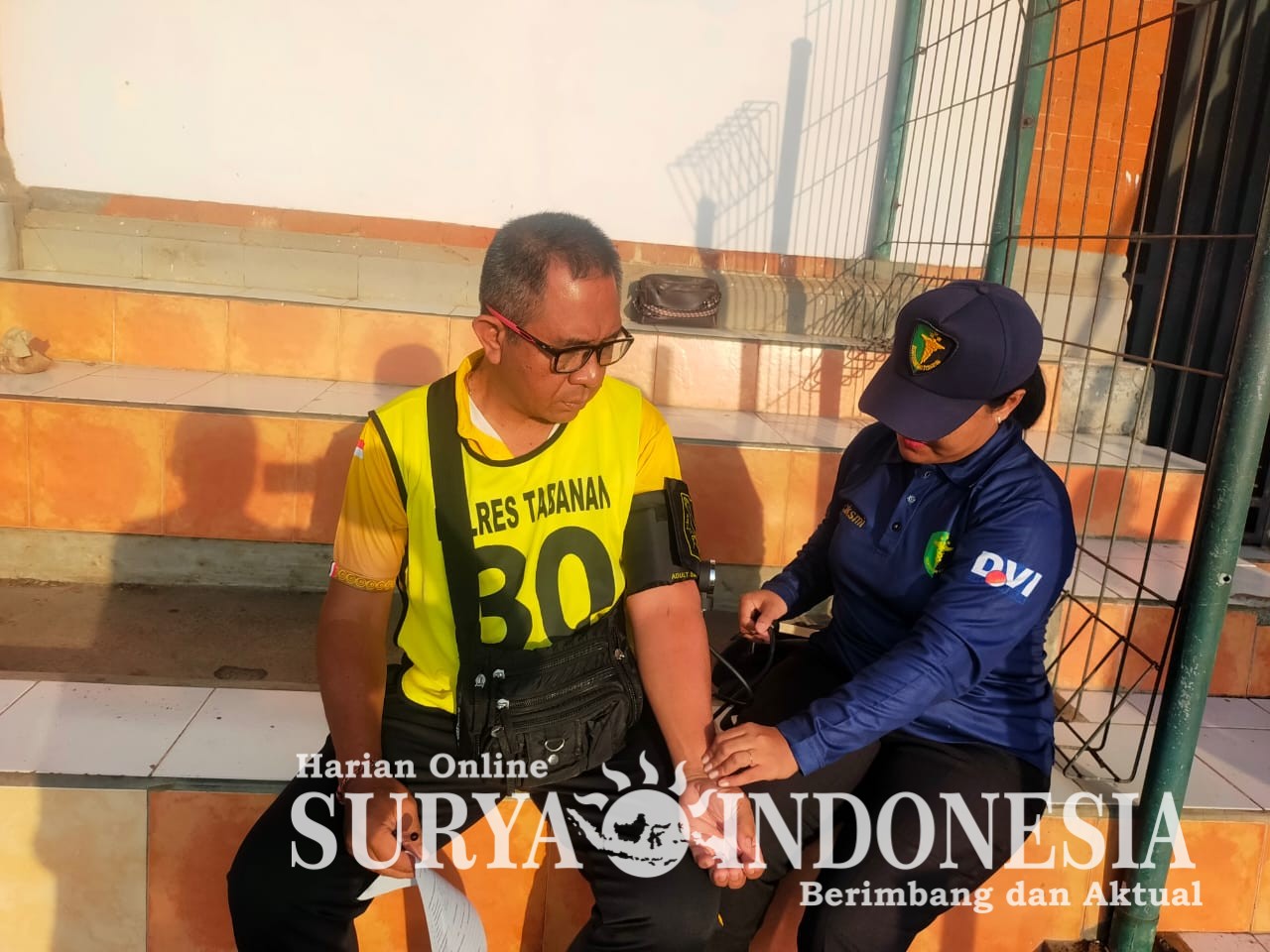 Sebelum pelaksanaan kegiatan personil diwajibkan melakukan cek tekanan darah (tensi) untuk menghindari hal – hal tidak terhindarkan, bila terdapat personil yang mengalami tensi tinggi dihimbau untuk tidak memaksakan diri untuk ikut melakukan kegiatan dan disarankan untuk jalan kaki saja “ungkap panitia kesjas.