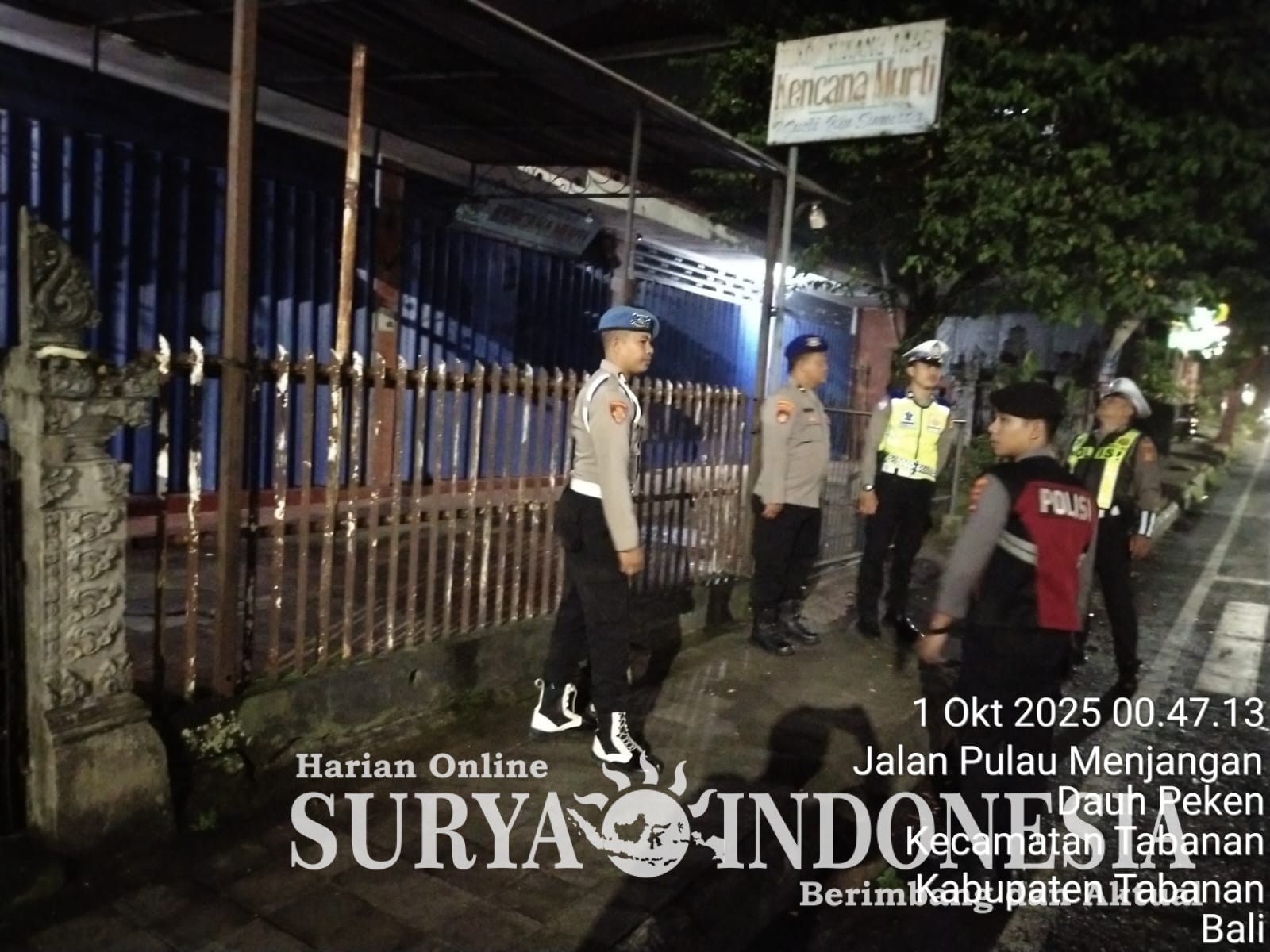 Polda Bali – Polres Tabanan – Surya indonesia.net, Dalam rangka menciptakan situasi kamtibmas yang aman dan kondusif, Polres Tabanan menggelar Blue Light Patrol pada Rabu dini hari (1/10/2025). Patroli dilakukan mulai pukul 00.30 hingga 02.00 Wita dengan menyasar sejumlah lokasi rawan kejahatan 3C (Curat, Curas, dan Curanmor) di wilayah hukum Polres Tabanan.
