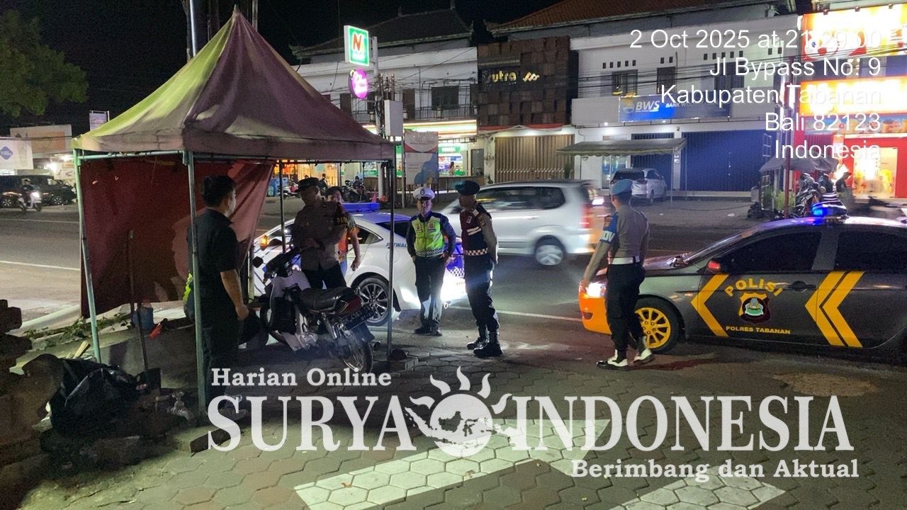 Tabanan, Surya indonesia.net – Polda Bali – Polres Tabanan – Humas Tabanan. Polres Tabanan terus meningkatkan langkah preventif dalam menjaga keamanan dan ketertiban masyarakat (kamtibmas). Pada Kamis malam (2/10/2025), gabungan piket fungsi Polres Tabanan melaksanakan Blue Light Patrol dengan sasaran sejumlah titik keramaian di wilayah hukum Polres Tabanan. Kegiatan berlangsung pukul 21.00 hingga 23.00 WITA, dipimpin Pawas Polres Tabanan IPDA I Ketut Adi Sastrawan, S.H., dengan melibatkan 18 personel.