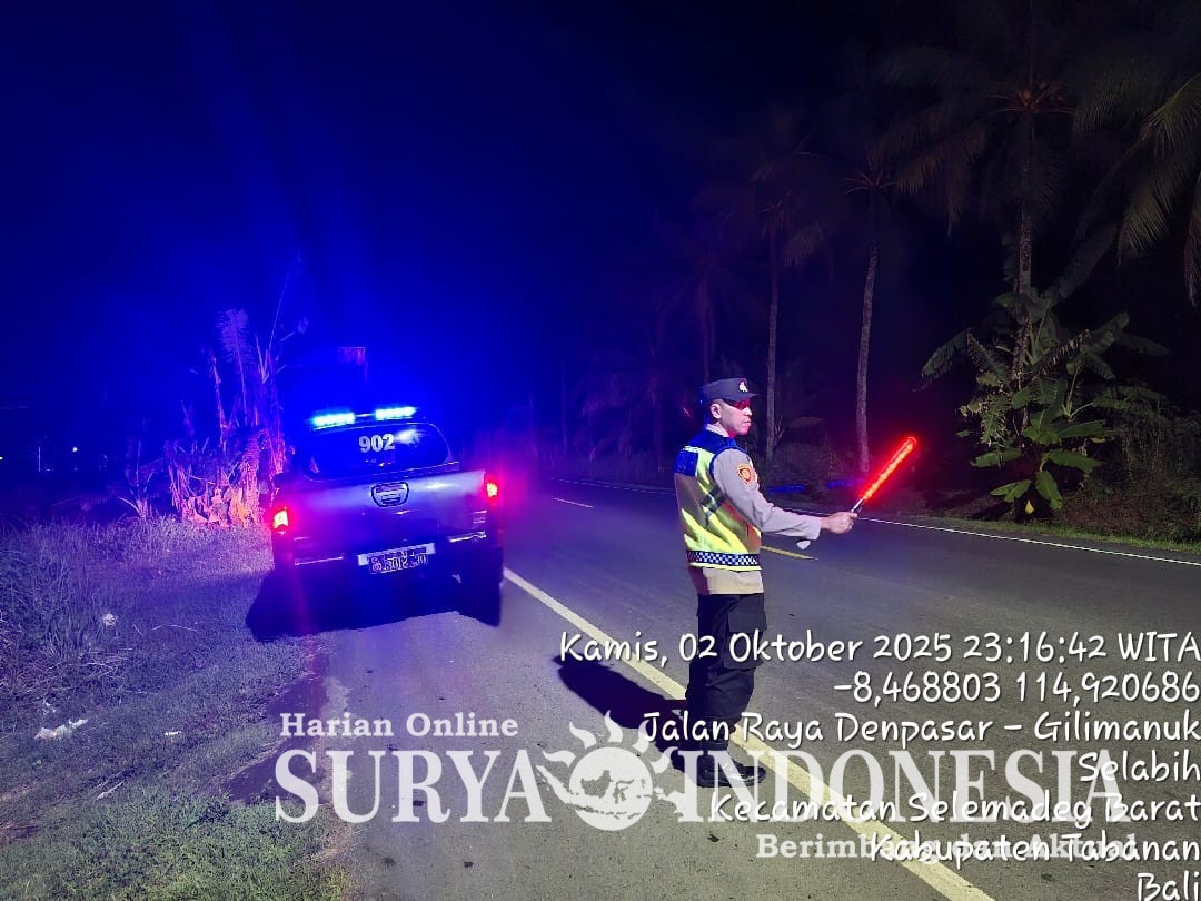 Tabanan, Surya indonesia.net – Polres Tabanan-Polsek Selbar – Suraberata, Jumat 03/10/2025 Pukul 21.00 s/d 23.00 wita Dalam rangka menciptakan situasi aman dan kondusif di wilayah Kecamatan Selemadeg barat Personil Polsek Selemadeg barat Polres Tabanan dipimpin Pawas AIPDA I Putu Hery Nata Saputra S.H optimalkan Kegiatan Patroli “Blue light” guna menekan ruang potensi gangguan Kamtibmas pada malam hari.