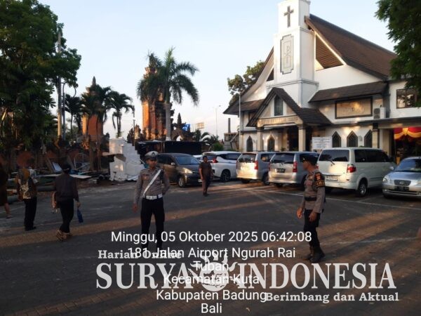 Badung, Surya indonesia.net  – Demi memastikan kenyamanan dan keamanan umat Kristiani dalam menjalankan ibadah, Polres Kawasan Bandara I Gusti Ngurah Rai menerjunkan personel untuk melaksanakan pengamanan di Gereja Ekklesia Bandara I Gusti Ngurah Rai, Minggu (5/10/2025).