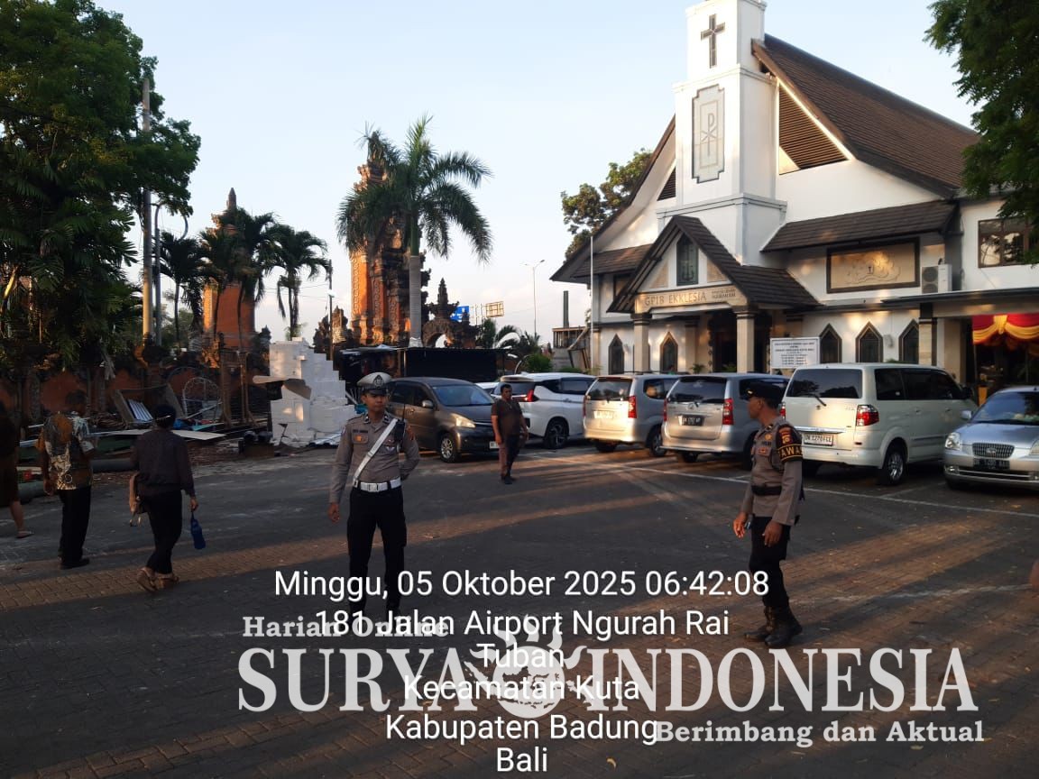 Badung, Surya indonesia.net – Demi memastikan kenyamanan dan keamanan umat Kristiani dalam menjalankan ibadah, Polres Kawasan Bandara I Gusti Ngurah Rai menerjunkan personel untuk melaksanakan pengamanan di Gereja Ekklesia Bandara I Gusti Ngurah Rai, Minggu (5/10/2025).