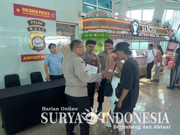 Badung , Surya indonesia.net – Kaposyan Terminal Internasional Bandara I Gusti Ngurah Rai AKP I Made Budiyana, S.H., M.H. bersama personel Pos Pelayanan (Posyan) melaksanakan kegiatan pelayanan kepada wisatawan mancanegara (WNA) di area keberangkatan Terminal Internasional, Rabu (8/10/2025).