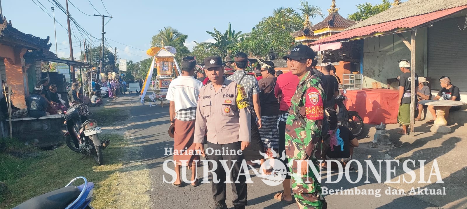 Pengamanan ini dilakukan untuk memastikan kelancaran kegiatan upacara dan memberikan rasa aman kepada warga yang melayat. Bhabinkamtibmas, Bhabinsa dan Pecalang bersinergi dalam melaksanakan pengamanan jalur dan kegiatan warga menuju kuburan.