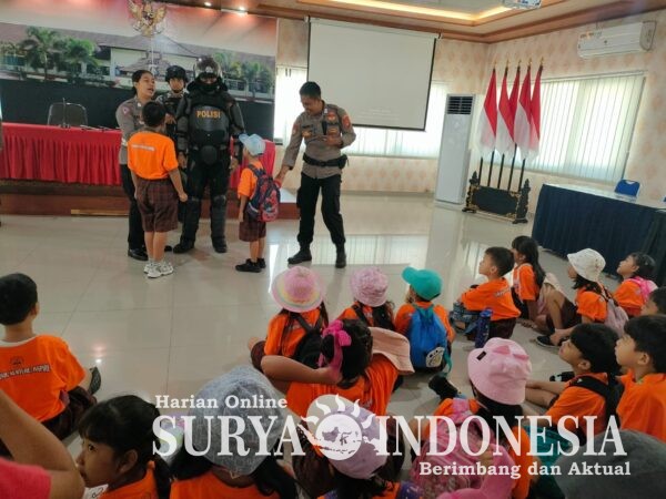 Tabanan, Surya indonesia.net –  Dalam upaya menumbuhkan rasa cinta dan kepercayaan anak-anak terhadap Polri sejak usia dini, Satuan Samapta Polres Tabanan melaksanakan kegiatan Pengenalan Fungsi Sat Samapta dan Peragaan Kostum Dalmas kepada siswa-siswi TK Bali Primary School. Kegiatan edukatif ini berlangsung pada Kamis (9/10/2025) pukul 09.00 WITA di Aula Wisnu Hartono dan halaman depan Gedung Samapta Polres Tabanan. Sebanyak 60 siswa dan 10 guru pendamping tampak antusias mengikuti kegiatan yang penuh semangat dan keceriaan tersebut.