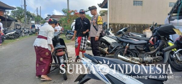 Tabanan, Surya indonesia.net  – Polsek Pupuan, Kamis 9 Oktober 2025 pukul 09.00 s/d 12.00 Wita, Bhabinkamtibmas Desa Pajahan Aiptu I Nyoman Kariaba bersama pecalang Desa Adat Pajahan melaksanakan kegiatan pengamanan rangkaian Piodalan Ageng di Pura Puseh Bale Agung Desa Adat Pajahan, Kecamatan Pupuan, Kabupaten Tabanan.