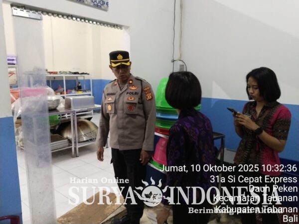 Tabanan, Surya indonesia.net – Polsek Tabanan Jumat 10 Oktober 2025 – Kapolsek Tabanan, Kompol I Gusti Putu Dharmanatha, S.H., M.H., melaksanakan peninjauan langsung ke Satuan Pelayanan Pemenuhan Gizi (SPPG) yang berlokasi di Yayasan Narendra Upadana, Desa Dauh Peken, Kecamatan Tabanan. Peninjauan ini dilakukan dalam rangka memastikan kesiapan dan kelancaran operasional unit pelaksana program pemerintah, yang berperan sebagai dapur umum untuk menyediakan makanan melalui Program Makan Bergizi Gratis (MBG). Jumat (10/10/2025) pagi hari