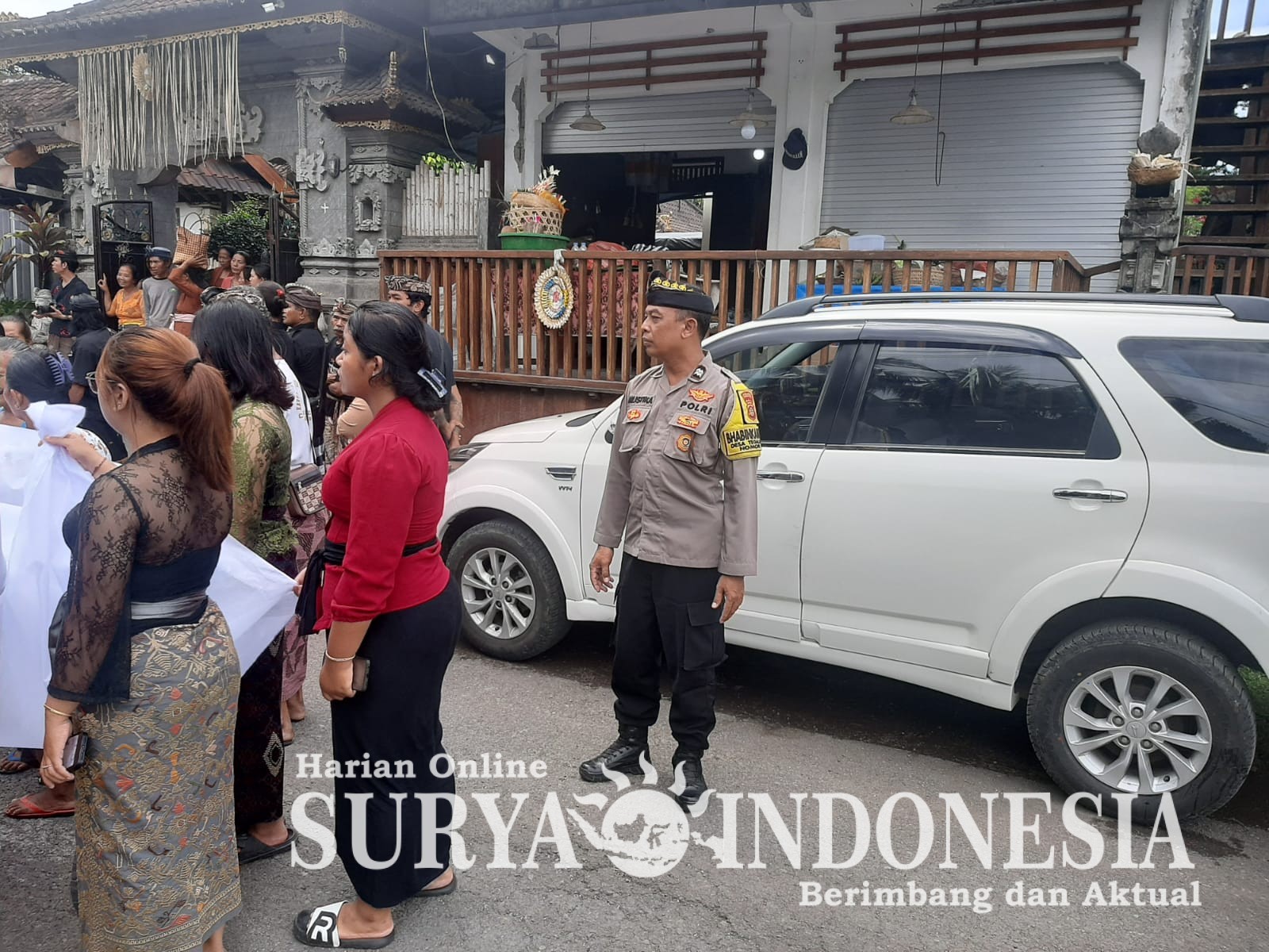 Pengamanan ini dilakukan untuk memastikan kelancaran kegiatan upacara dan memberikan rasa aman kepada warga yang melayat. Bhabinkamtibmas, Bhabinsa dan Pecalang bersinergi dalam melaksanakan pengamanan jalur dan kegiatan warga menuju kuburan.