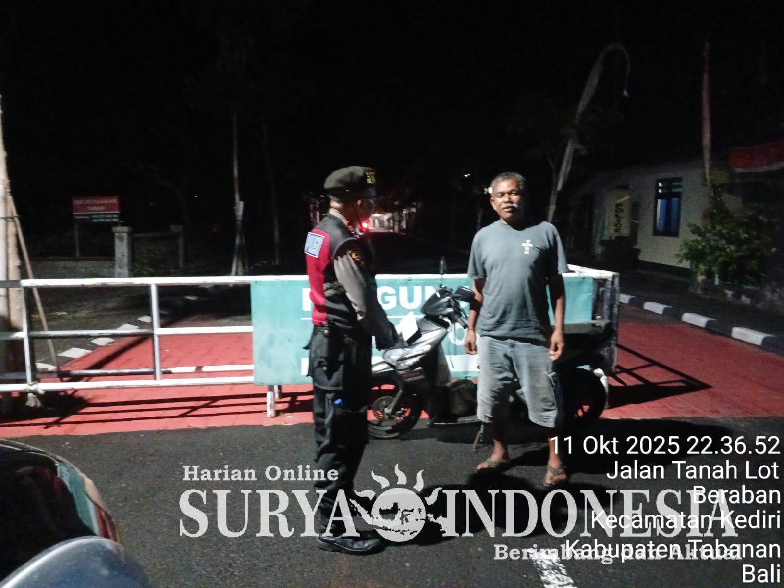 Tabanan, Surya indonesia.net – Polsek Kediri melaksanakan ‘Patroli Barcode’ di seputaran wilayah Kediri Sabtu (11/10/2025 ) pukul 22.00 s/d 24.00 wita dalam rangka menciptakan situasi Kamtibmas yang aman dan kondusif.