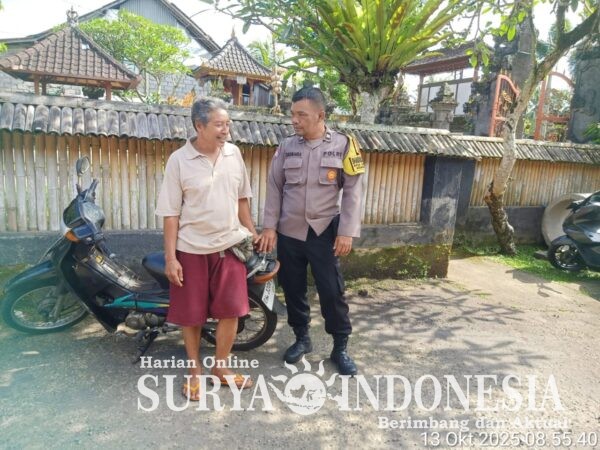 Tabanan, Surya indonesia.net – Polsek Marga Senin, (13/10/25), pukul 09.00 wita Bhabinkamtibmas Desa Cau Belayu Polsek Marga Aiptu I Made Darmaika melaksanakan kegiatan sambang desa dan bertemu dengan pekaseh cau belayu Bapak I Made Puspa selanjutnya shering dan saling tukar informasi.