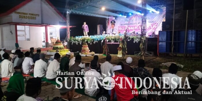 Jember,suryaindonesia.net,- Pemdes Desa Sukogidri, Kecamatan Ledokombo Kabupaten Jember, Menggelar pengajian umum memperingati Maulid Nabi Muhammad SAW sekaligus selamatan desa, yang dirangkum Iring Iringan tumpeng yang berlangsung Khidmat.