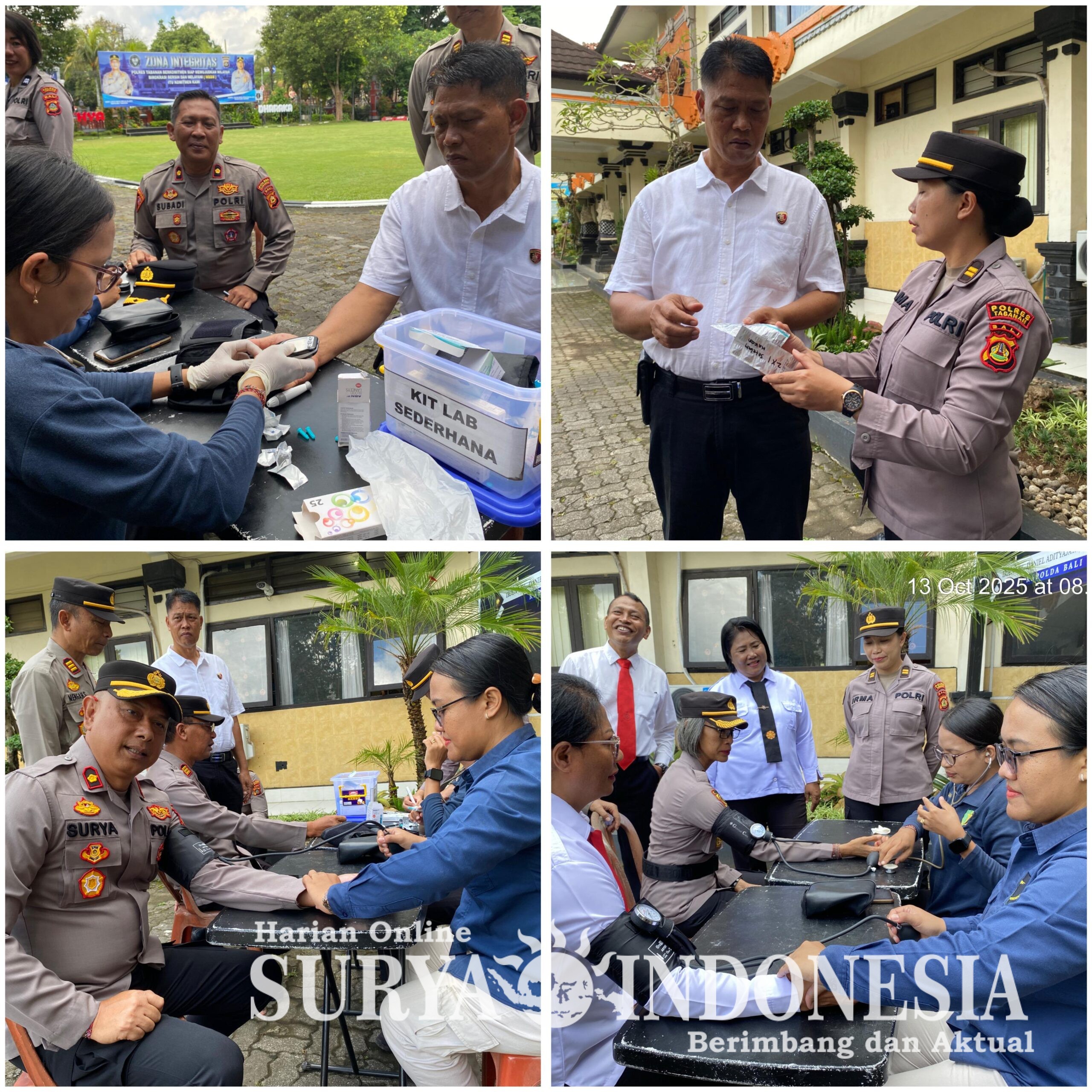 Tabanan, Surya indonesia.net – Sebagai bentuk kepedulian terhadap kesehatan personel, Seksi Kedokteran dan Kesehatan (Sidokkes) Polres Tabanan melaksanakan kegiatan pemeriksaan kesehatan lapangan usai Apel Jam Pimpinan di Lapangan Apel Polres Tabanan, Senin (13/10/2025). Kegiatan yang dipimpin langsung oleh Kasi Dokkes Polres Tabanan IPTU dr. Ni Wayan Irmawati, S Ked., bersama dua anggota ini bertujuan untuk memastikan kondisi kesehatan personel tetap prima dalam menjalankan tugas sehari-hari.