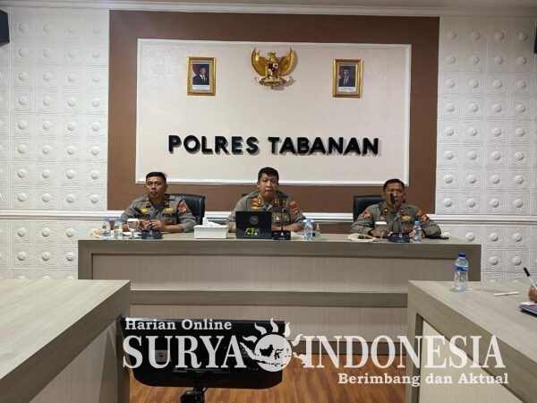 Tabanan, Surya indonesia.net – Bertempat di Ruang Vicon Sarja Arya Racana Polres Tabanan, pada Selasa (14/10/2025) pukul 15.15 Wita, telah berlangsung kegiatan Video Conference (Vicon) arahan Kapolri, Jenderal Polisi Drs. Listyo Sigit Prabowo, M.Si., dalam rangka Analisis dan Evaluasi (Anev) perkembangan situasi kamtibmas terkini. Kegiatan tersebut diikuti oleh Kapolres Tabanan AKBP I Putu Bayu Pati, S.I.K., M.H., Wakapolres Tabanan, serta para Pejabat Utama (PJU) Polres Tabanan.
