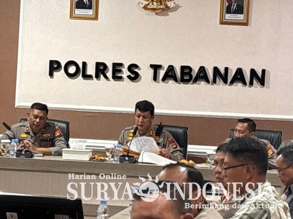 Tabanan, Surya indonesia.net – Pada Senin malam, 13 Oktober 2025 pukul 20.00 Wita bertempat di Ruang Vicon Sarja Arya Racana Polres Tabanan, telah berlangsung kegiatan Video Conference (Vicon) dari Asisten Utama Kapolri Bidang Operasi (Astamaops) dalam rangka Analisa dan Evaluasi (Anev) perkembangan situasi keamanan dan ketertiban masyarakat (Guankamtibmas) terkini serta kesiapan Polri menghadapi peringatan satu tahun Kabinet Merah Putih. Kegiatan tersebut dipimpin langsung oleh Astamaops Kapolri, Komjen Pol Dr. H. Muhammad Fadil Imran, M.Si.