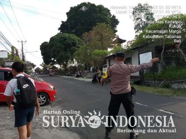 Tabanan, Surya indonesia.net – Polsek Marga Selasa,(14/10/25),pukul 07.30 s/d 08.00 wita, Guna mencegah kemacetan dan terjadinya laka lantas siang hari Kapolsek marga menurunkan anggotanya untuk melaksanakan strong point sepanjang jalan wisnu marga berikan rasa aman dan nyaman kepada pengendara bermotor begitu juga berikan rasa aman kepada anak-anak sekolah dan warga masyarakat.