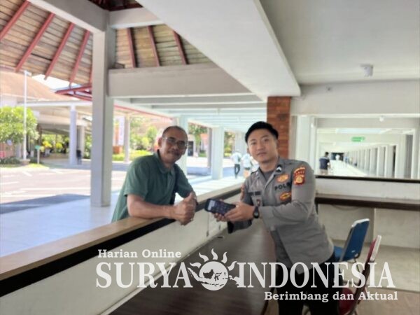Mangupura , Surya indonesia.net – Personil Pos Pelayanan Kepolisian (Posyan) Domestik Polres Kawasan Bandara I Gusti Ngurah Rai menyerahkan satu unit handphone milik seorang penumpang kepada pemiliknya, setelah sebelumnya ditemukan oleh warga di area toilet Terminal Domestik Bandara, Rabu (15/10/2025).