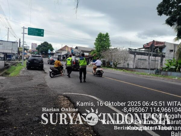 Tabanan, Surya indonesia.net –  Polsek Selbar Suraberata, Kamis 16/10/2025 Pukul 07.00 s/d 08.00 wita Guna menjaga keamanan dan kelancaran lalu lintas, keramaian aktivitas masyarakat di pagi hari, Personel Polsek Selbar AIPTU I Putu Sugiarta Laksanakan Strong Point di Depan Pasar Suraberata antisipasi Gangguan Kamtibmas di pagi hari demi keselamatan dan kelancaran pengguna jalan Raya di Kecamatan Selemadeg barat, Kabupaten Tabanan.
