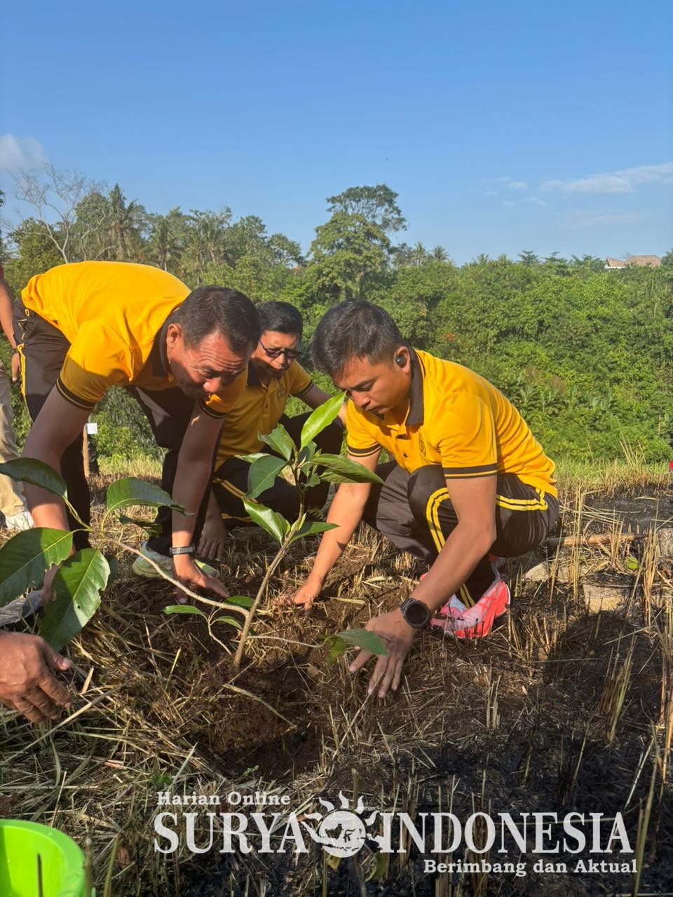 Gianyar, Surya indonesia.net  – Kapolres Gianyar AKBP Chandra C. Kesuma, S.I.K., M.H. menghadiri kegiatan Gotong Royong Semesta Berencana berupa penanaman pohon dan bersih-bersih sungai di area Puspa Aman, Desa Lodtunduh, Kecamatan Ubud, Kabupaten Gianyar, Jumat (17/10/2025).