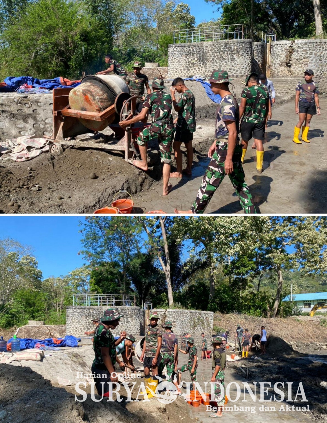 Terus Dikebut Kodim 1625/Ngada Lanjutkan TMMD di Riung Barat, Pengecoran Lantai Bendungan Panondiwal Berjalan Lancar