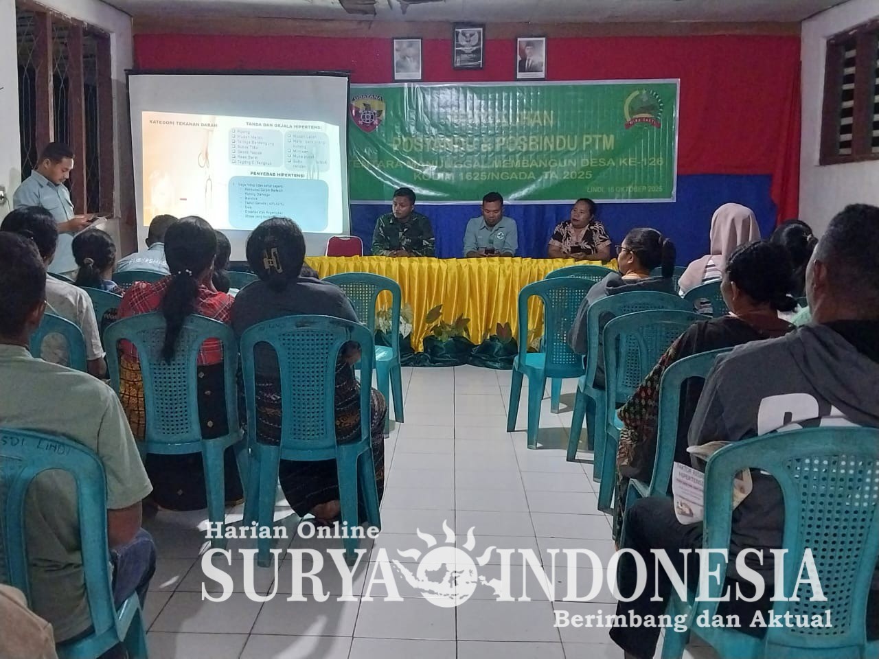 Ngada, 17 Oktober 2025 , Surya indonesia.net — Dalam rangka mendukung kegiatan non-fisik TNI Manunggal Membangun Desa (TMMD) ke-126, Kodim 1625/Ngada bekerja sama dengan Tim Kesehatan Puskesmas Lindi menggelar kegiatan penyuluhan Posyandu dan Posbindu Penyakit Tidak Menular (PTM) di Dusun Lindi, Desa Benteng Tawa, Kecamatan Riung Barat, Kabupaten Ngada.