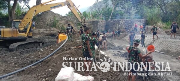 Pada hari ini, personel Satgas TMMD bersama masyarakat setempat melaksanakan pengecoran lantai bendungan sebagai bagian dari proses rehabilitasi infrastruktur irigasi tersebut. Kegiatan ini bertujuan untuk meningkatkan fungsi bendungan dalam mendukung ketahanan pangan dan pengairan sawah masyarakat setempat.