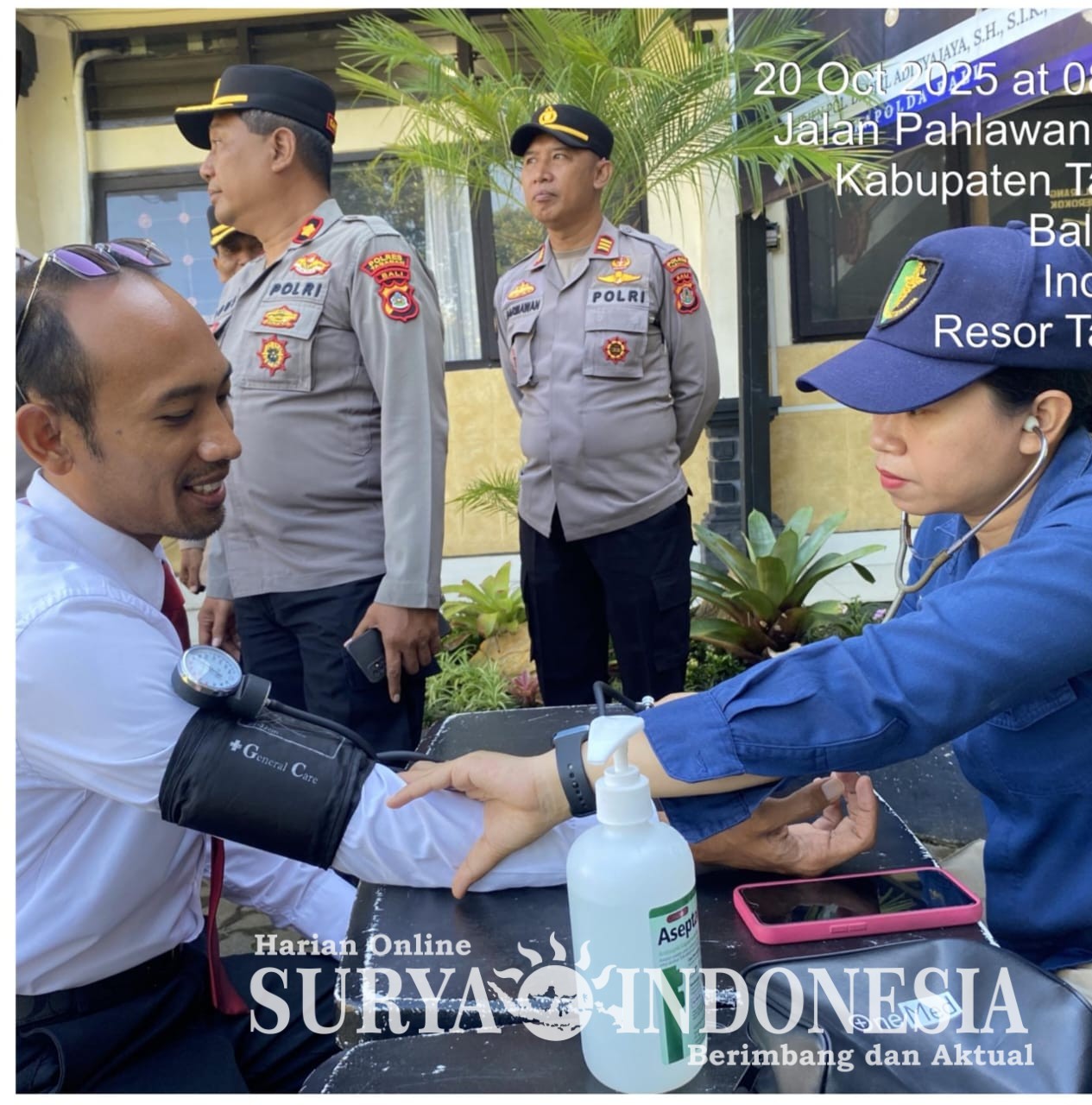 Sidokkes Polres Tabanan Gelar Pemeriksaan Kesehatan Lapangan Usai Apel Jam Pimpinan