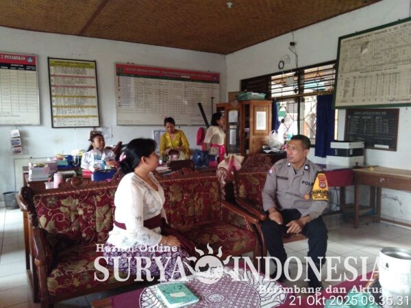Tabanan, Surya indonesia.net – Polaek Kerambitan, Selasa 21 Oktober 2025; Bhabinkamtibmas Desa Penarukan Aiptu I Putu Widiarsana mengunjungi SD 3 dan SD 2 Penarukan dalam upaya mencegah Bullying/perundungan pada anak-anak tingkat Sekolah Dasar.