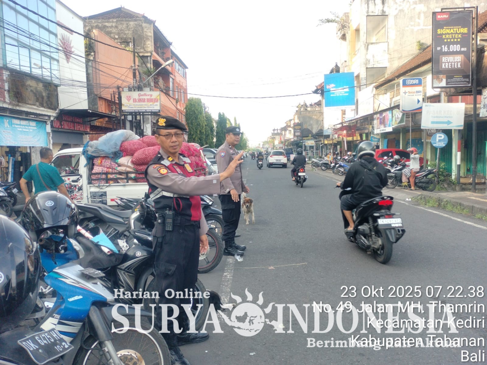 Kamis, 23 Oktober 2025 pukul 06.30 wita, Penggelaran personil Polsek Kediri secara maksimal yang dipimpin langsung Perwira Pengawas AKP I Ketut Bagiana, S.H. dengan mengerahkan polri baik yang berseragam maupun non uniform dalam melaksanakan penjagaan dan pengaturan arus lalulintas pada simpang yang rawan laka dan macet terutama pada jalur Utama Denpasar Gilimanuk tepatnya di simpang empat Untab jalan A. Yani termasuk dan juga depan sekolah/ penyebrangan anak sekolah serta pemantauan situasi dalam pasar tradisional mengingat pengunjung pasar cukup ramai.