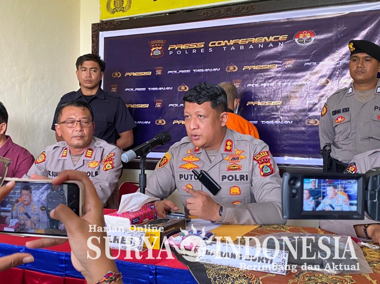 Dalam konferensi pers tersebut, Kapolres Tabanan memaparkan kronologi kasus pencurian yang dilakukan oleh pelaku Inisial SY (55) asal Situbondo, Jawa Timur. Pelaku berpura-pura sebagai pemulung dan masuk ke pekarangan rumah korban, I Komang Sugata Karma, untuk mencari barang rongsokan. Saat melihat handphone milik korban yang tergeletak di teras rumah, pelaku kemudian mengambilnya dan melarikan diri. Berkat kerja sama cepat antara korban, perangkat desa, Bhabinkamtibmas Desa Cau Belayu, serta tim IT desa, keberadaan pelaku berhasil dilacak hingga wilayah Desa Sobangan, Kecamatan Mengwi.