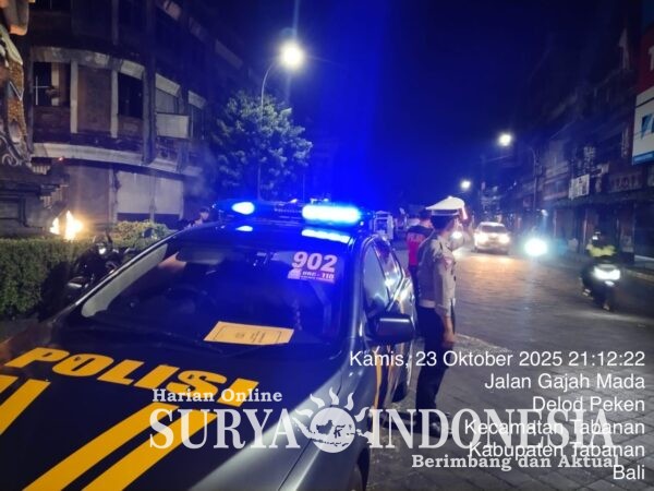Tabanan, Surya indonesia.net – Polsek Tabanan Jumat 24 Oktober 2015 – Jajaran Polsek Tabanan kembali menunjukkan komitmennya dalam menjaga keamanan dan ketertiban masyarakat (Kamtibmas) dengan melaksanakan kegiatan rutin Blue Light Patrol pada malam hari. Kegiatan preventif ini digelar pada hari Kamis, 23 Oktober 2025, mulai pukul 21.00 WITA.
