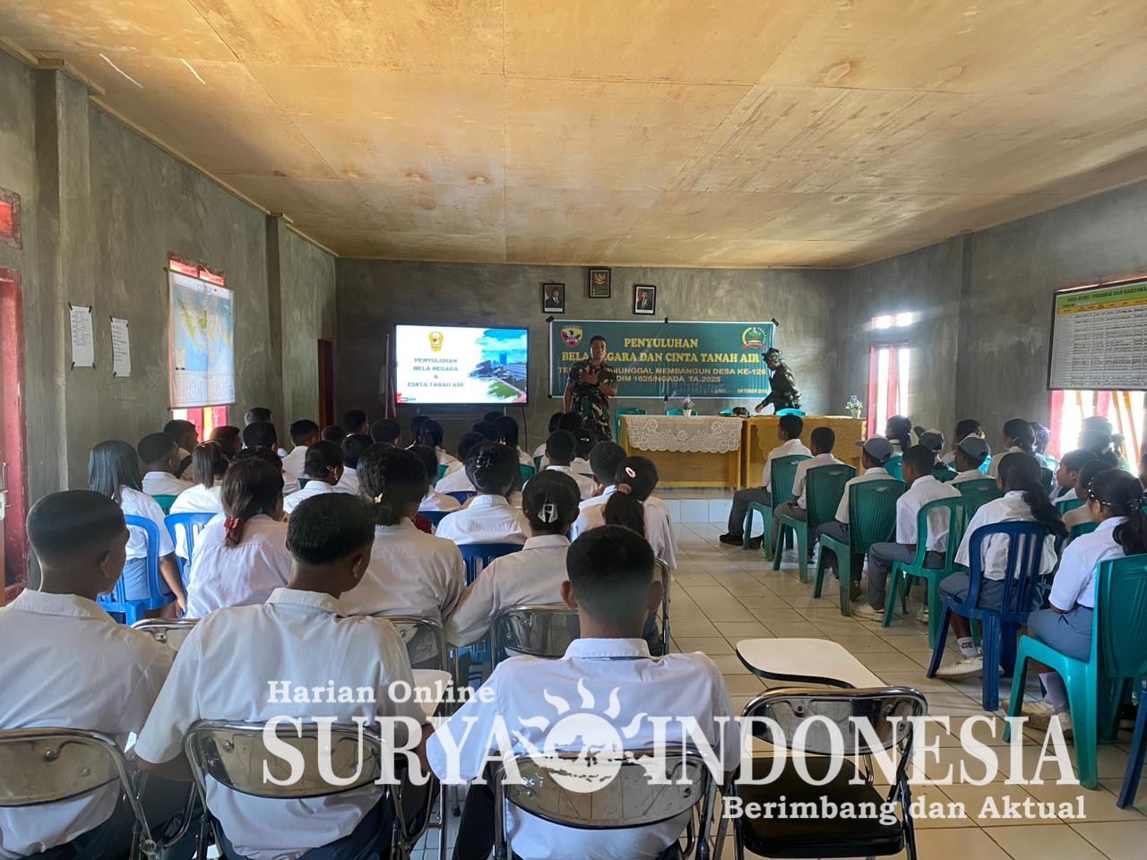 Ngada, Nusa Tenggara Timur , Surya.indonesia.net — Dalam rangka kegiatan TNI Manunggal Membangun Desa (TMMD) ke-126 Kodim 1625/Ngada, Kasdim 1625/Ngada Mayor Inf. Supriyanto melaksanakan kegiatan penyuluhan tentang Cinta Tanah Air dan Bela Negara kepada para siswa-siswi SMAN 1 Riung Barat, bertempat di Aula Kantor Desa Benteng Tawa, Kecamatan Riung Barat, Kabupaten Ngada.