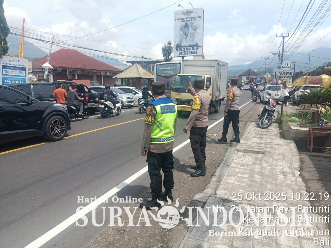 Tabanan, Surya indonesia.net – Polsek Baturiti, 25 Oktober 2025 pukul 11.00 s/d 14.00 wita, dalam rangka menjaga situasi Kamtibmas yang aman dan kondusif serta arus lalu lintas mancarli cegah terjadinya laka dan kemacetan.