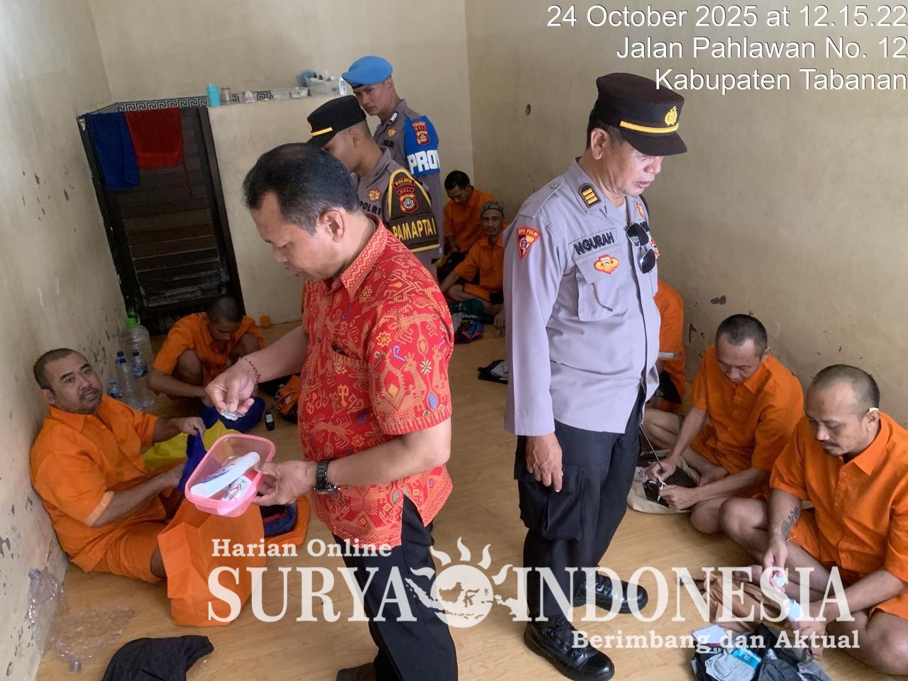 Polda Bali – Polres Tabanan, suryaindonesia.net – Dalam rangka memastikan keamanan serta kondisi ruang tahanan tetap dalam keadaan baik dan terkendali, Polres Tabanan melalui Satuan Tahti (Tahanan dan Barang Bukti) melaksanakan kegiatan pemeriksaan rutin terhadap ruang tahanan, para tahanan, serta barang-barang bawaan mereka pada Sabtu, 25 Oktober 2025. Pemeriksaan yang berlangsung pukul 09.00 hingga 09.30 Wita ini dilaksanakan berdasarkan Surat Perintah Nomor: ST/224/II/HUK.7.1./2025 tanggal 24 Februari 2025 tentang upaya antisipasi tahanan melarikan diri, bunuh diri, maupun keributan di dalam rutan.