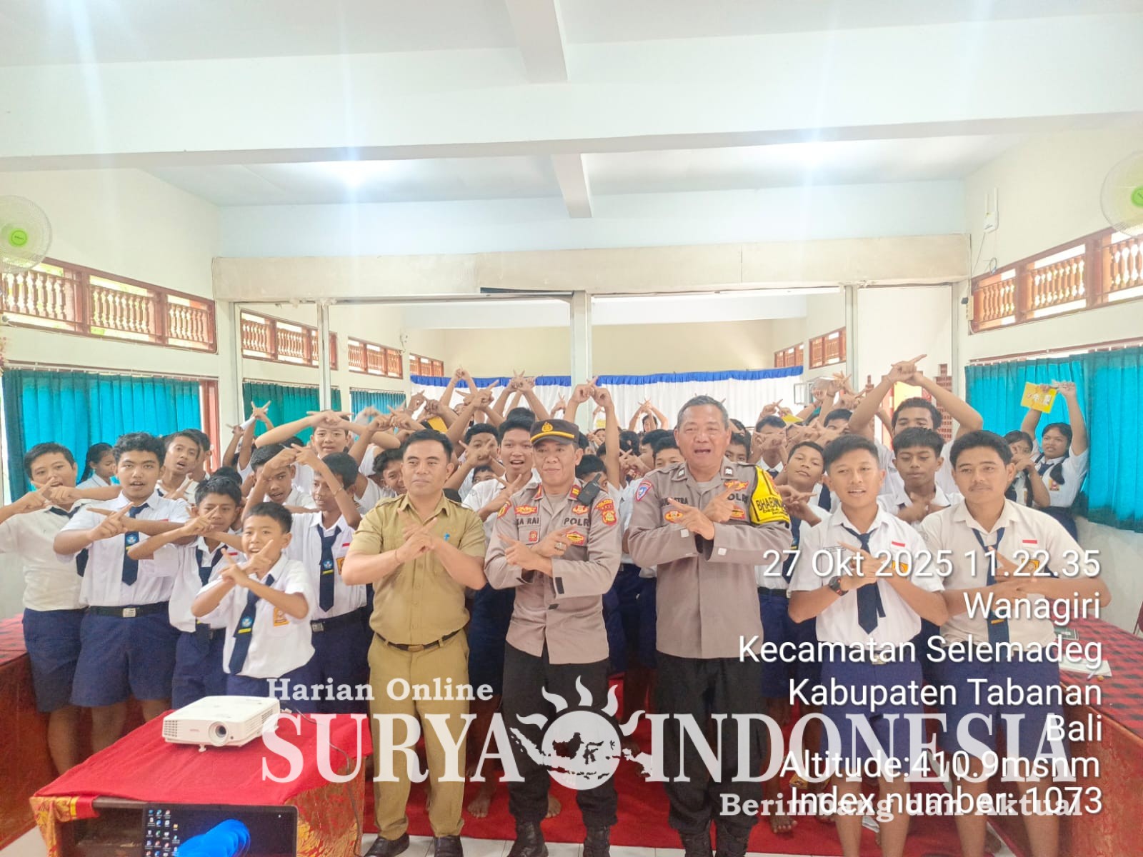 Tabanan, Surya indonesia.net  – Kepolisian Sektor (Polsek) Selemadeg secara aktif menggencarkan program sosialisasi anti-bullying atau perundungan sebagai langkah pencegahan (preventif) kasus kekerasan di lingkungan pendidikan. Kegiatan ini dilaksanakan pada pagi hari Senin, 27 Oktober 2025, dengan kehadiran Waka Polsek Selemadeg, Iptu I Putu Eka Rai Putra, S.Sos. di SMPN 2 Selemadeg, yang disambut langsung oleh Kepala Sekolah, I Komang Alit Wirayuda, S.Pd.