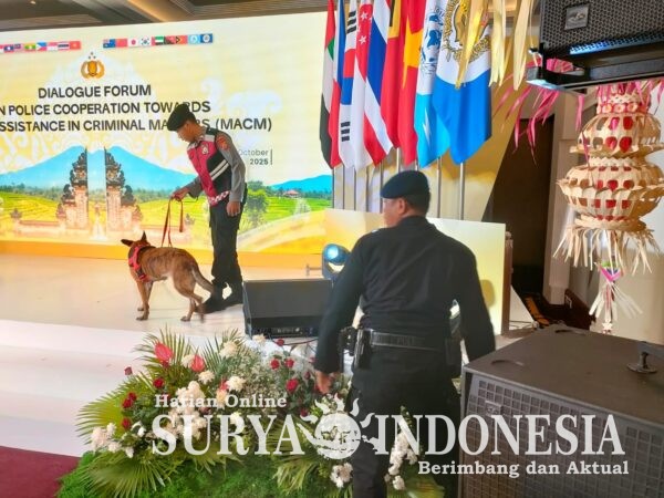Bali , Surya indonesia.net – Detasemen Gegagana Satbrimob Polda Bali sterilisasi ruang konfrensi hotel bintang bali resort kuta, pada selasa 28 oktober 2025.