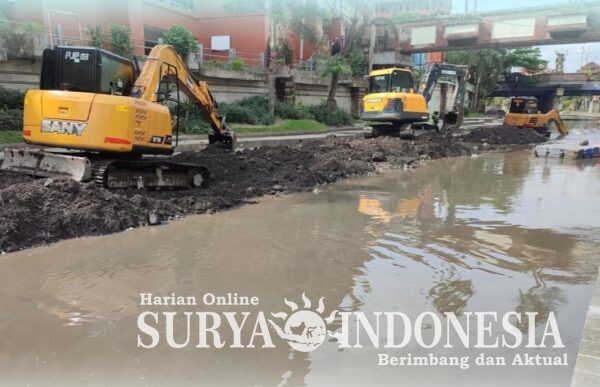 “Kemarin alat berat sempat terjerembab karena lumpur yang terlalu dalam. Sekarang kami gunakan tiga alat berat, satu untuk penggalian dan dua lainnya untuk memuat material hasil pengerukan,” jelasnya.