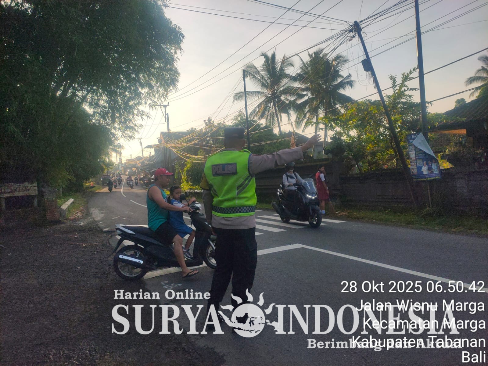 Tabanan,Surya indonesia.net – Polsek Marga Guna mencegah kemacetan dan terjadinya gangguan kamtibmas Kapolsek marga menurunkan anggota untuk melaksanakan strong point pagi sepanjang jalan wisnu marga guna berikan rasa aman dan nyaman kepada pengendara bermotor begitu juga berikan rasa aman kepada warga masyarakat dan anak anak sekolah, Selasa,(28/10/25),pukul 06.30 s/d 08.00 wita.
