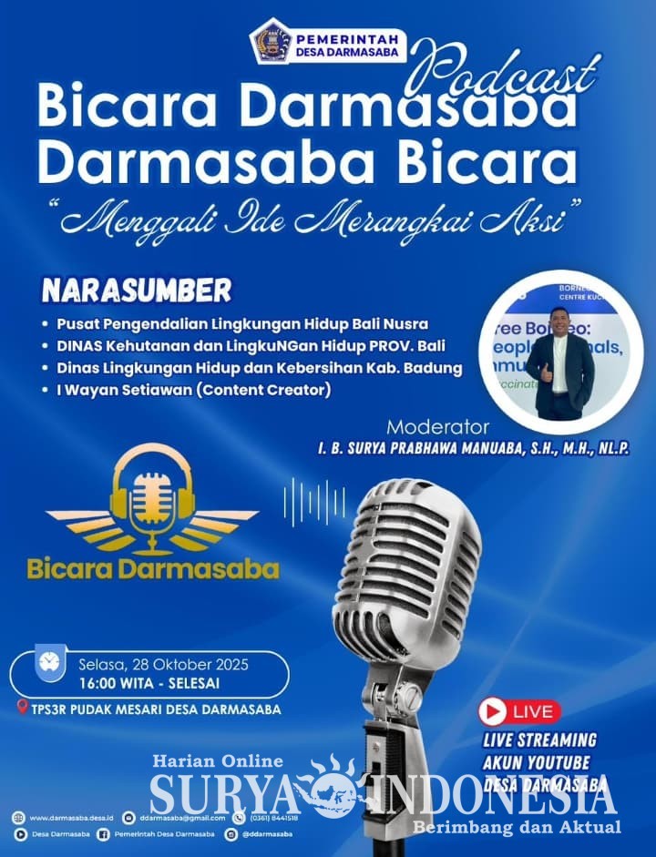 Darmasaba, suryaindonesia.net – Isu strategis mengenai tata kelola sampah di tingkat hulu menjadi topik utama dalam podcast live “Darmasaba Bicara, Bicara Darmasaba” yang diselenggarakan oleh Tempat Pengolahan Sampah Reduce, Reuse, Recycle (TPS3R) Pudak Mesari pada Selasa malam, 28 Oktober 2025.