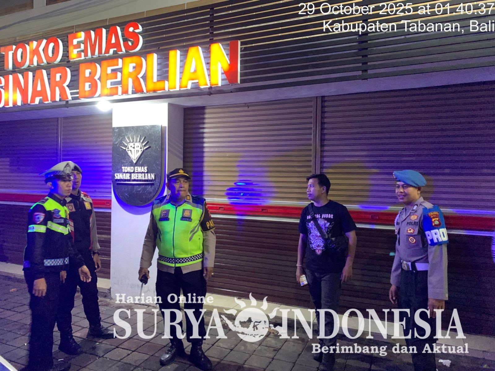 Polda Bali, Polres Tabanan, suryaindonesia.net – Dalam upaya menjaga situasi kamtibmas agar tetap aman dan kondusif, Polres Tabanan melaksanakan kegiatan Blue Light Patrol pada Rabu (29/10/2025) dini hari. Kegiatan ini digelar mulai pukul 00.30 Wita hingga 02.00 Wita, menyasar sejumlah titik rawan tindak kejahatan 3C (Curat, Curas, dan Curanmor) di wilayah hukum Polres Tabanan. Patroli gabungan tersebut dipimpin oleh Pawas Polres Tabanan, AKP I Komang Agastya, S.H., dengan melibatkan 19 personel dari berbagai fungsi.