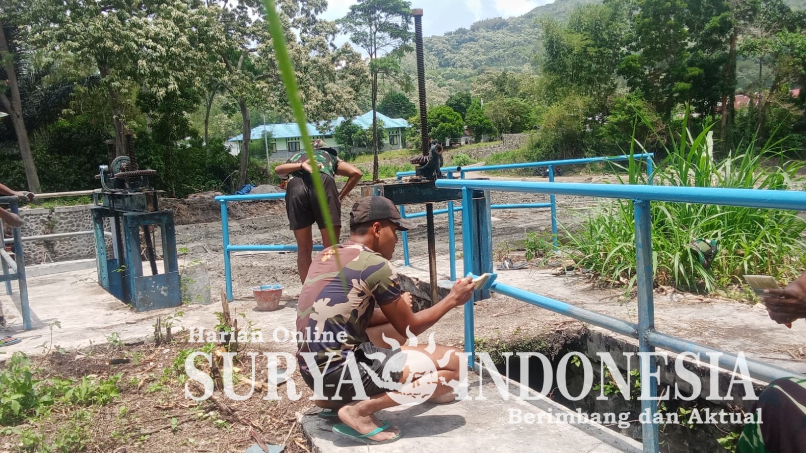 TMMD ke-126 Kodim 1625/Ngada Tuntaskan 82% Pekerjaan Plester dan Pengecatan Pintu Bendungan Panondiwal