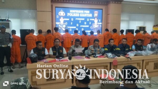 Gianyar, Surya indonesia.net – Selama kurun waktu bulan September sampai Oktober Polres Gianyar bersama Polsek jajaran sukses dalam mengungkap 33 kasus berbagai tindak pidana dan 53 tersangka dapat diamankan