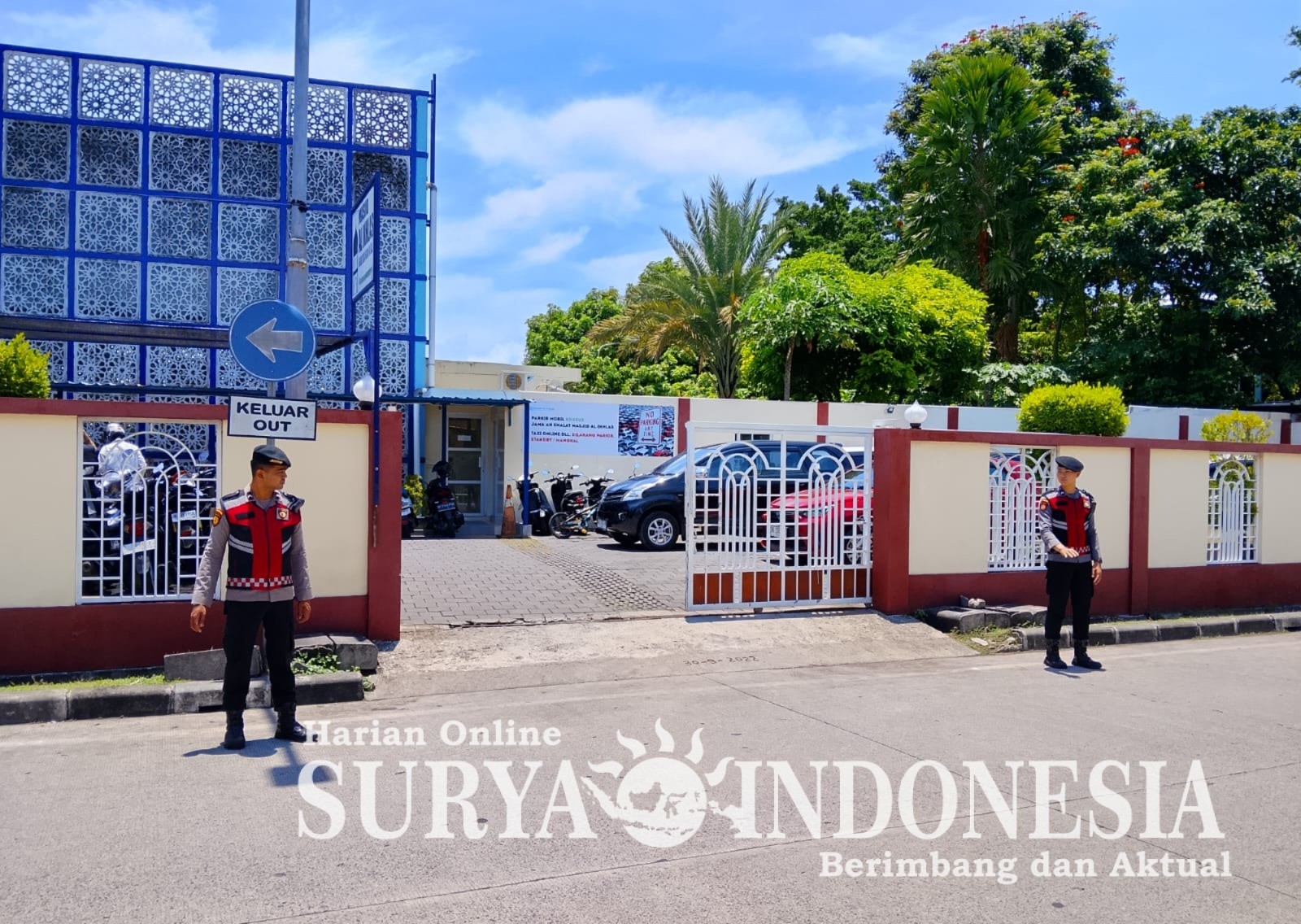 Personel yang bertugas tampak melakukan pengaturan arus lalu lintas di depan area masjid, membantu jamaah menyeberang jalan, dan mengarahkan kendaraan keluar maupun masuk agar tidak terjadi kemacetan.