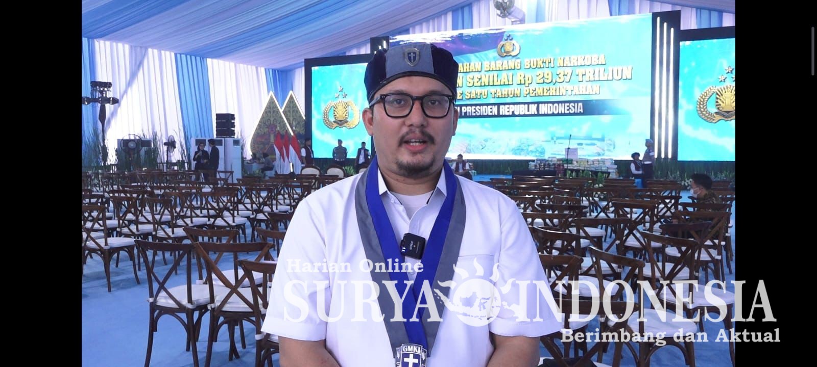 Jakarta, Surya indonesia.net  – Gerakan Mahasiswa Kristen Indonesia (GMKI) menyatakan dukungan penuh terhadap langkah tegas pemerintah dan Kepolisian Republik Indonesia dalam pemberantasan narkoba. Hal tersebut disampaikan oleh Ketua Umum Pengurus Pusat GMKI Masa Bakti 2025–2027, Prima Surbakti, usai menghadiri kegiatan pemusnahan barang bukti narkoba hasil ungkapan Polri, yang nilainya mencapai Rp29 triliun.