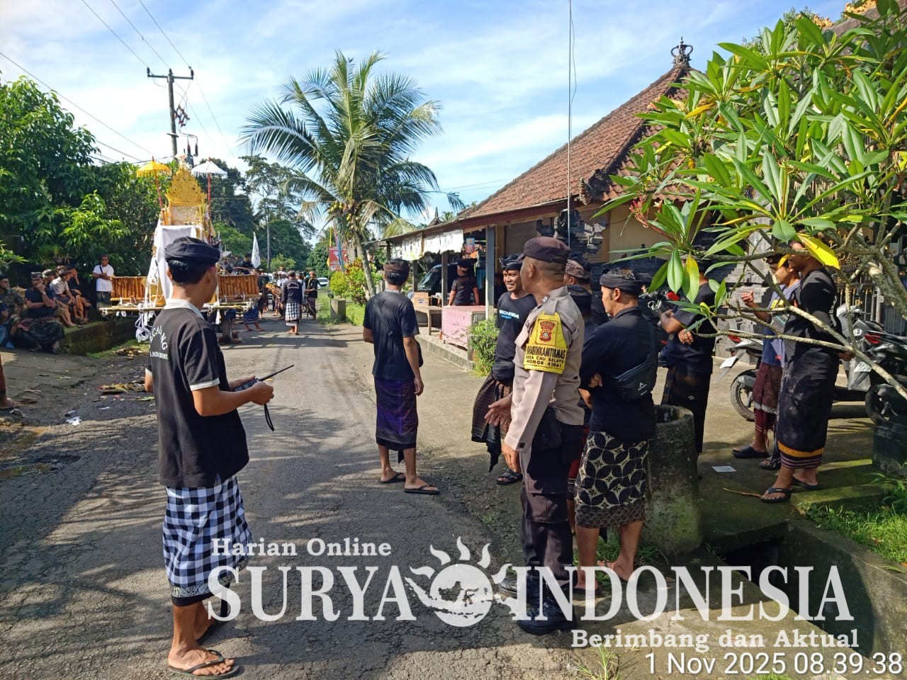 Polres Tabanan-Polsek Marga, suryaindonesia.net – Dalam rangka memberikan rasa aman dan nyaman bagi masyarakat yang melaksanakan kegiatan adat Bhabinkamtibmas desa cau belayu bersama pecalang atensi dan pengamanan kegiatan upacara pitra yadnya ngaben almarhum I Wayan Njulu (Jero Mangku Ratu Nyoman Pura Dalem Purwa) warga br adat seribupati,ds cau belayu,kec marga. Sabtu,(01/11/25),pukul 08.30 wita.