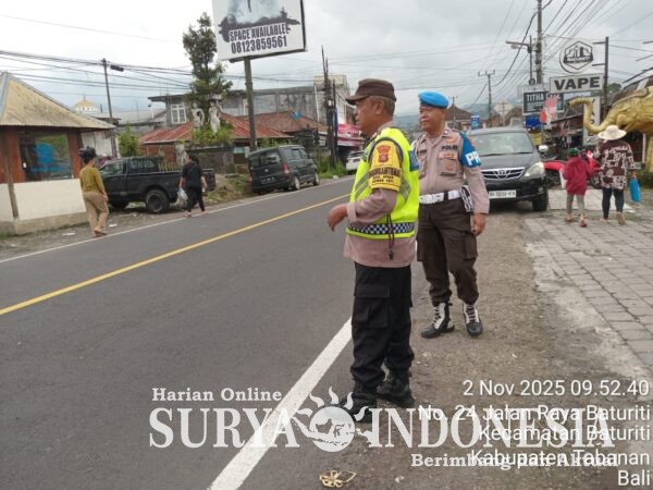 Tabanan, Surya indonesia.net – Polsek Baturiti, Minggu, 02 Nopember 2025, pukul 09.00 s/d 11. 00 wita, dalam rangka menjaga situasi Kamtibmas yang aman dan kondusif serta arus lalu lintas aman dan lancar cegah terjadinya laka dan kemacetan.