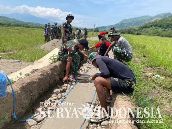 Ngada, 2 November 2025,Surya indonesia.net – Program TNI Manunggal Membangun Desa (TMMD) ke-126 Kodim 1625/Ngada terus menunjukkan perkembangan signifikan. Hingga hari ini, kegiatan fisik berupa pengecoran lantai saluran irigasi di lokasi Pu’un Keo, Desa Benteng Tawa, Kecamatan Riung Barat, Kabupaten Ngada telah mencapai progres 89 persen.